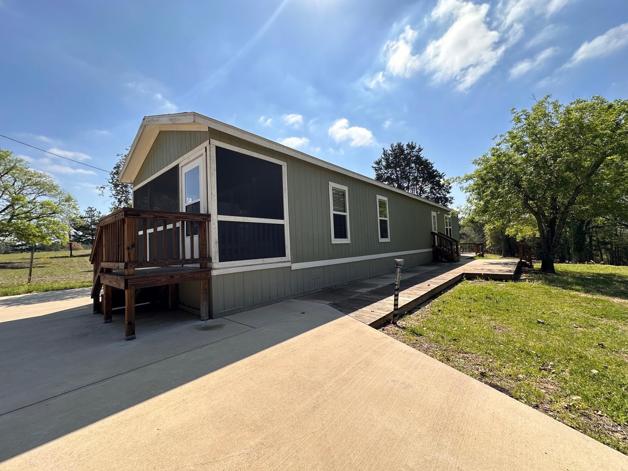 | REDUCED!!! NOW $115,000!! SELLER Says: BRING YOUR OFFERS!! Welcome to your charming country retreat in Palestine ISD! This well-maintained 2019 single wide Moe Town mobile home boasts 2 bedrooms, 2 full bathrooms and a screened-in porch perfect for enjoying those serene country settings! Step outside onto the large open deck and take in the expansive views of the countryside! This cozy adobe features a concrete driveway and walk path encircling the home, providing easy access and added durability! Plus, enjoy the eco-friendly benefits of paid-in-full solar panels! Don't miss out on this delightful gem! Schedule your showing TODAY! | |