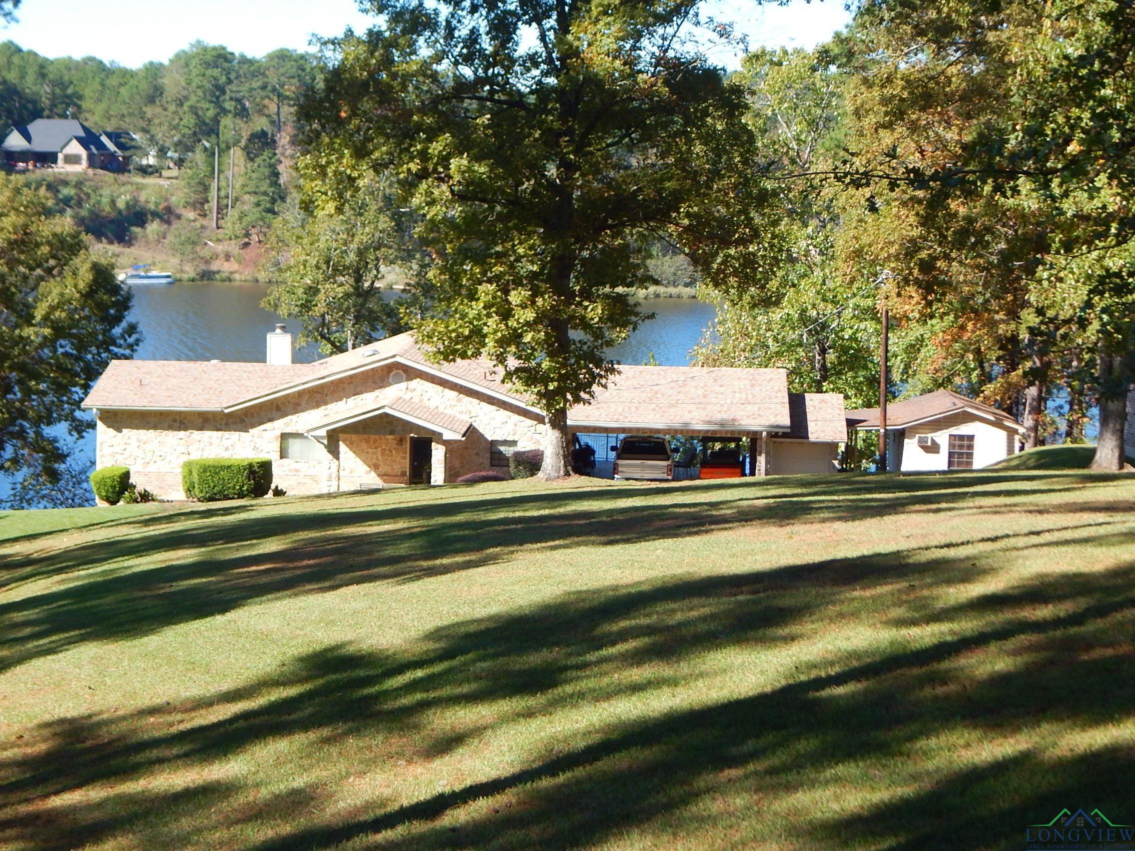 | Beautiful house on lake Gladewater with stunning views. 2,544 sq. ft. brick house that backs up to the Lake. Beautiful patios to sit and watch the wildlife. Large three stall boat house with lifts in all three bays. Nice swimming or fishing deck. Long seawall for all your friends to park their boats. Large master and washroom on ground level. 3 bedrooms and 3.5 baths. House includes power blinds in living room, vaulted ceilings, hand scrapped hardwood floors, central vac system, intercom system, double oven, glass cooktop, granite countertops, trash compactor, nice pantry, fireplace, gorgeous landscaping, Golf cart garage, shop, lots of storage, Long concrete driveway with powered privacy gate, roof was replaced a year ago. Great place for a weekender or a permanent place to live. call for an appointment. | |