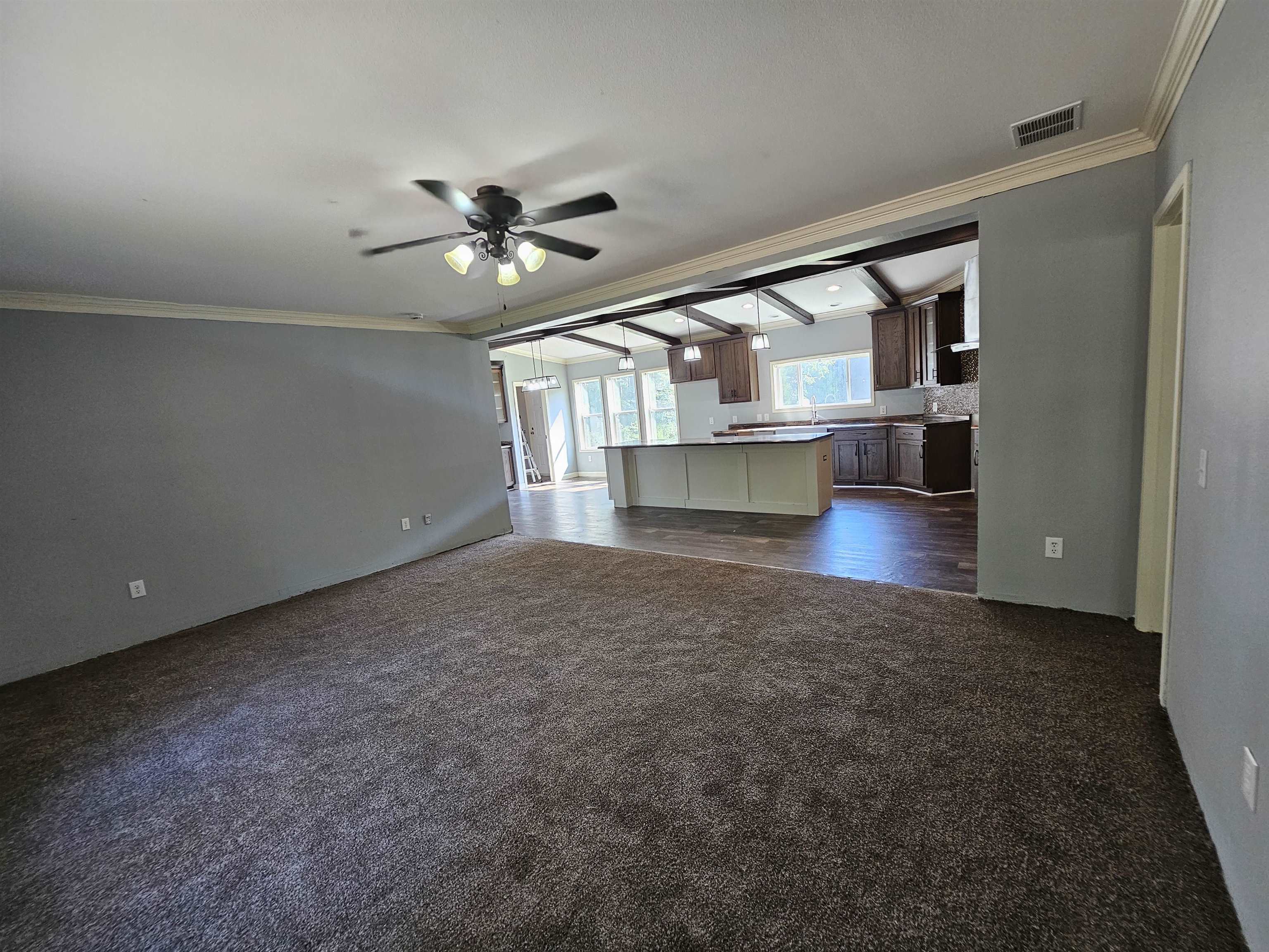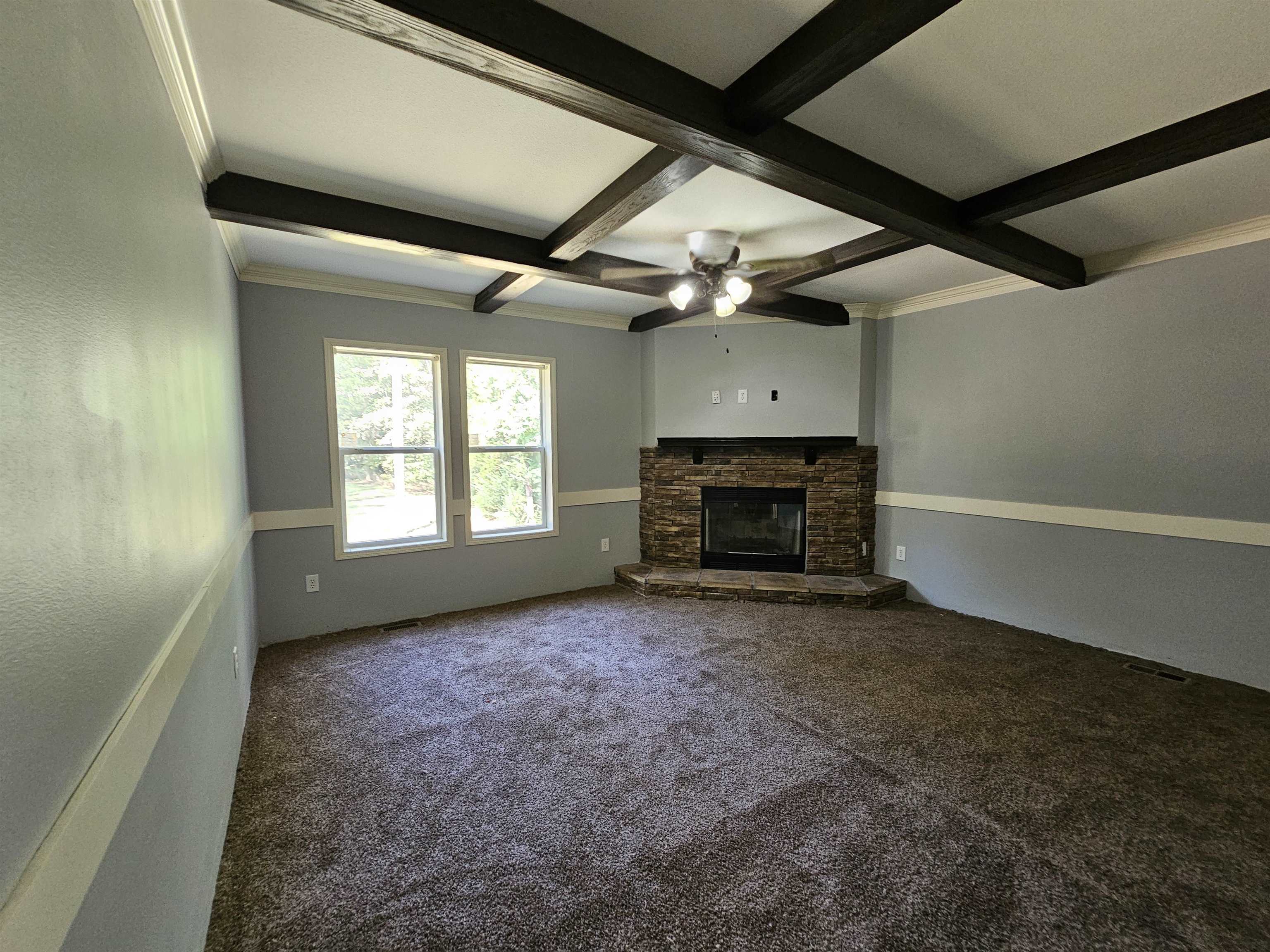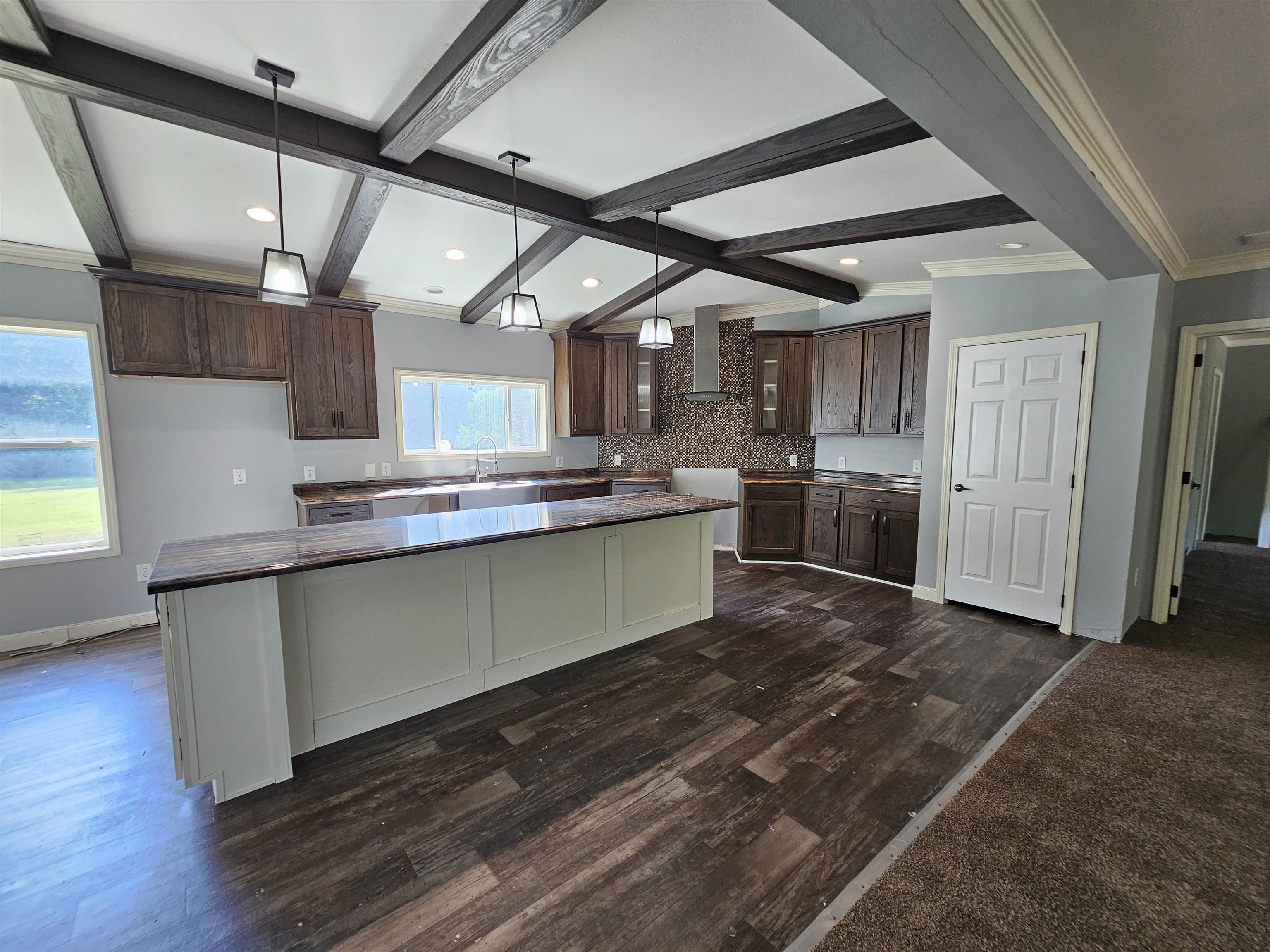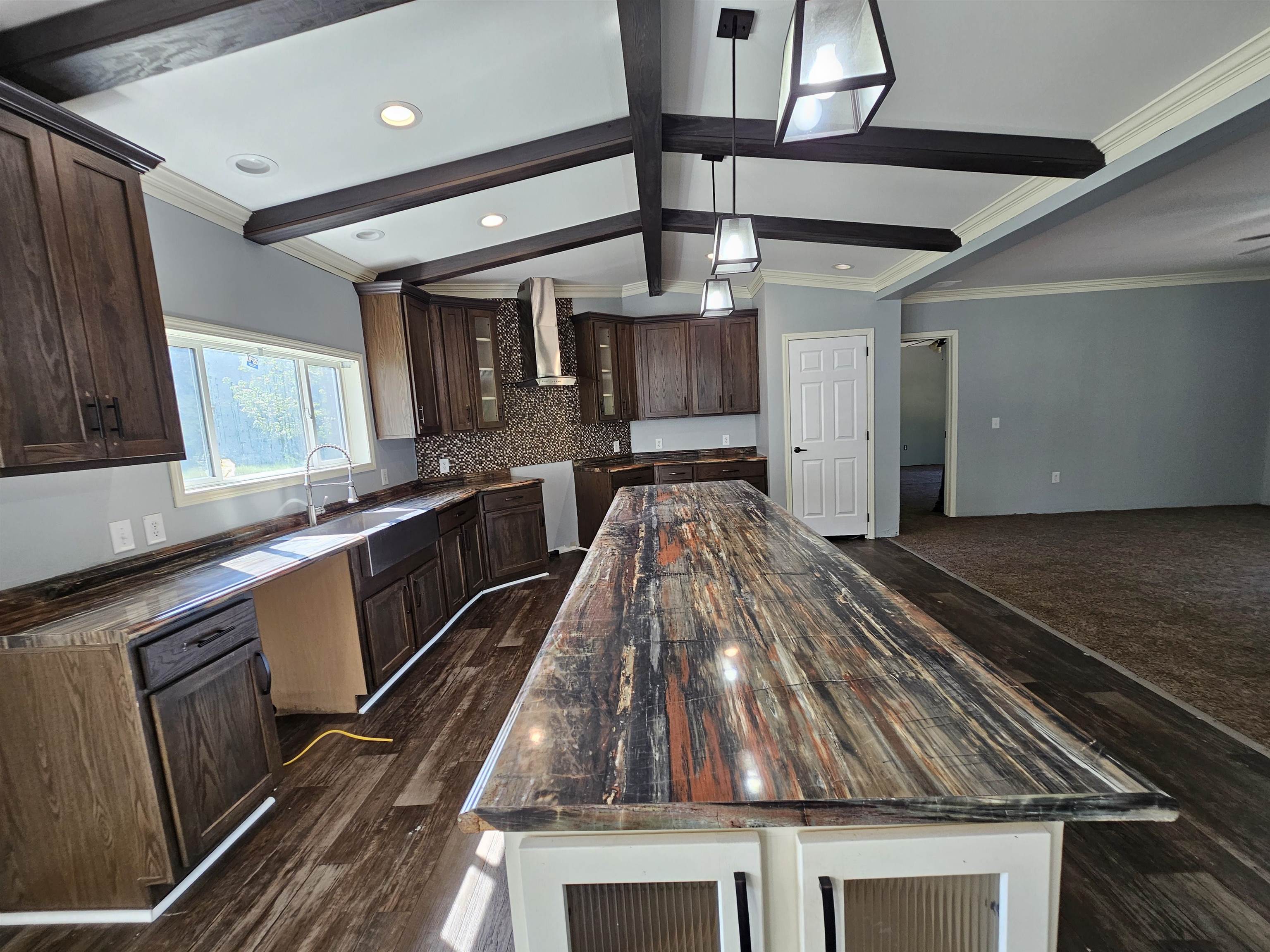 | Super fancy 2018 Sunshine Manufactured Home on 1 acre in the Joaquin ISD. This home features 4 bedroom, 2 baths, 2 living areas, 2400sqft, 0.99 acre lot, tape & textured walls, upgraded 30-19-11 insulation, 2x6 sidewalls, wood burning fireplace in separate family room, ceiling beams, stainless farmhouse sink, can lights, stem lights, huge kitchen island, vaulted ceiling, pantry, storage closets, massive master bedroom closet, tile shower, soaker tub, dual vanity, built-ins, thermopane windows, and it's out in the country. Remodel is wrapping up! New carpet-paint-linoleum-deck-blinds. | |