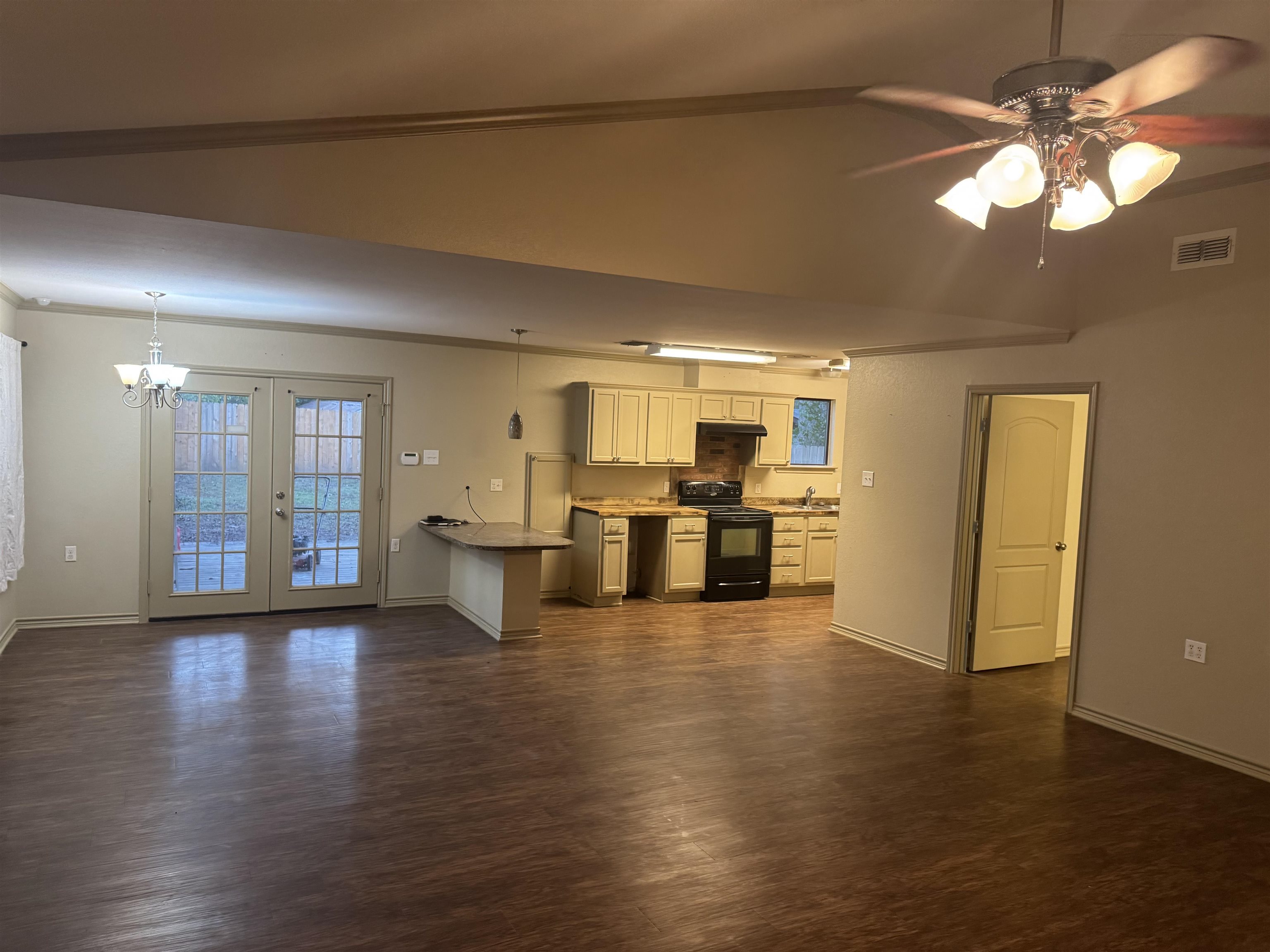 | Wow! Must see Barndominium in a great location on the corner of 2012 & 918. Very well keep 2/1 that has an open concept of the living room and Kitchen. New countertops, crown molding, French doors, custom cut blinds, new septic system, carport with storage building with a fenced in yard. Don't miss out on this one! | |