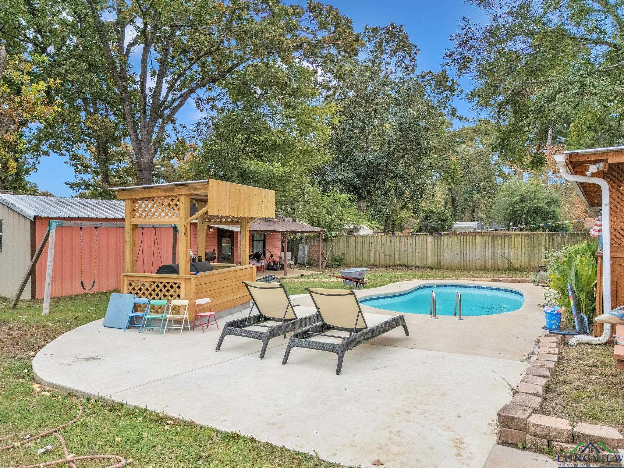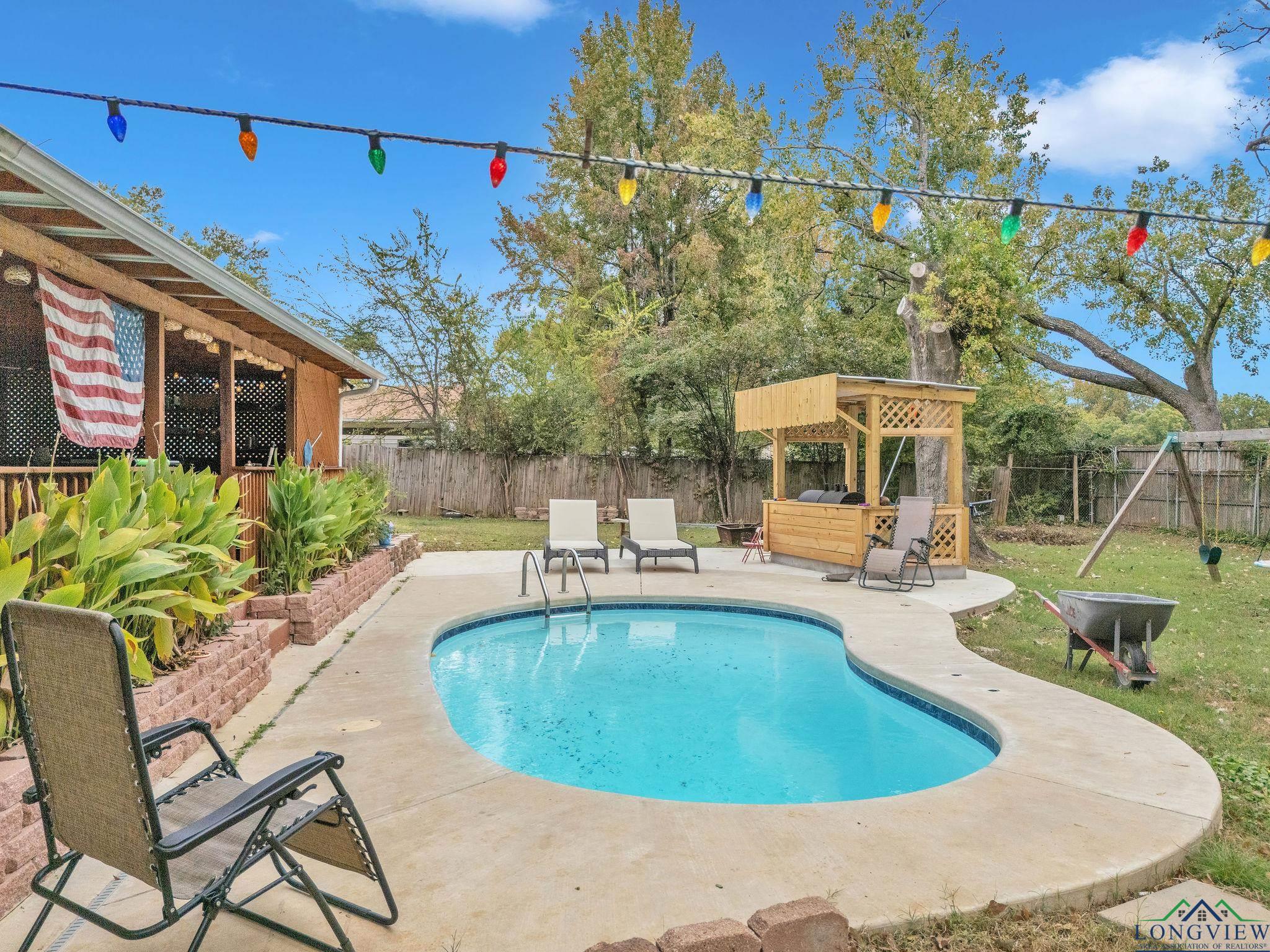 | Welcome to this adorable 3-bedroom, 2-bath home offering 1,860 square feet of comfortable living space in a highly desirable, centrally located neighborhood. You’ll love the inviting layout featuring easy-to-maintain tile flooring in the living areas, and plenty of natural light. Just outside is your own backyard oasis — complete with a sparkling pool, spacious patio, and a great BBQ area perfect for entertaining family and friends. A real bonus is the detached mother-in-law suite, featuring a studio style living area plus a full bathroom — ideal for guests, extended family, or even a private home office. With its great curb appeal, versatile living spaces, and unbeatable location close to shopping, dining, and schools, this home has everything you need to enjoy the best of East Texas living! | |
