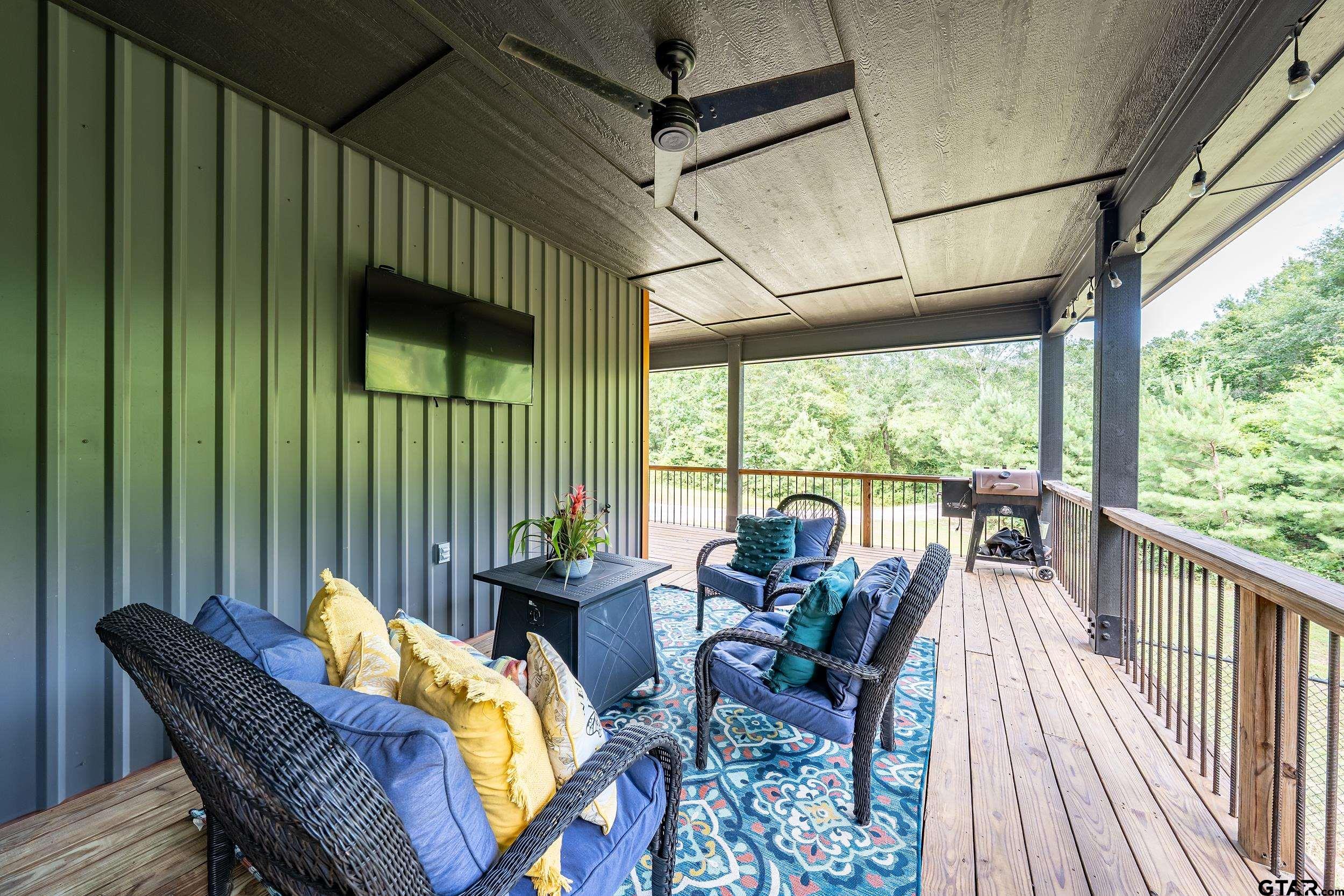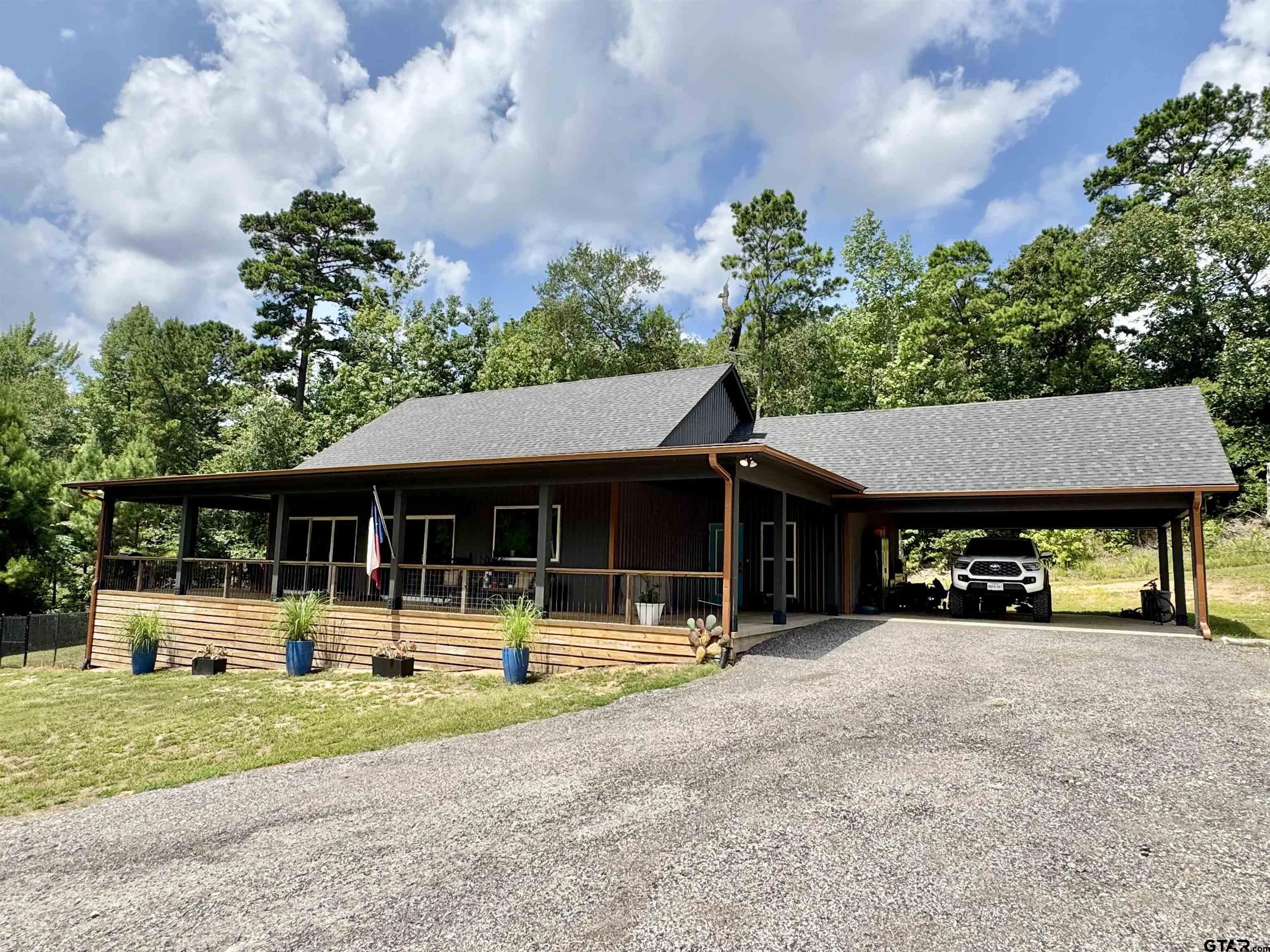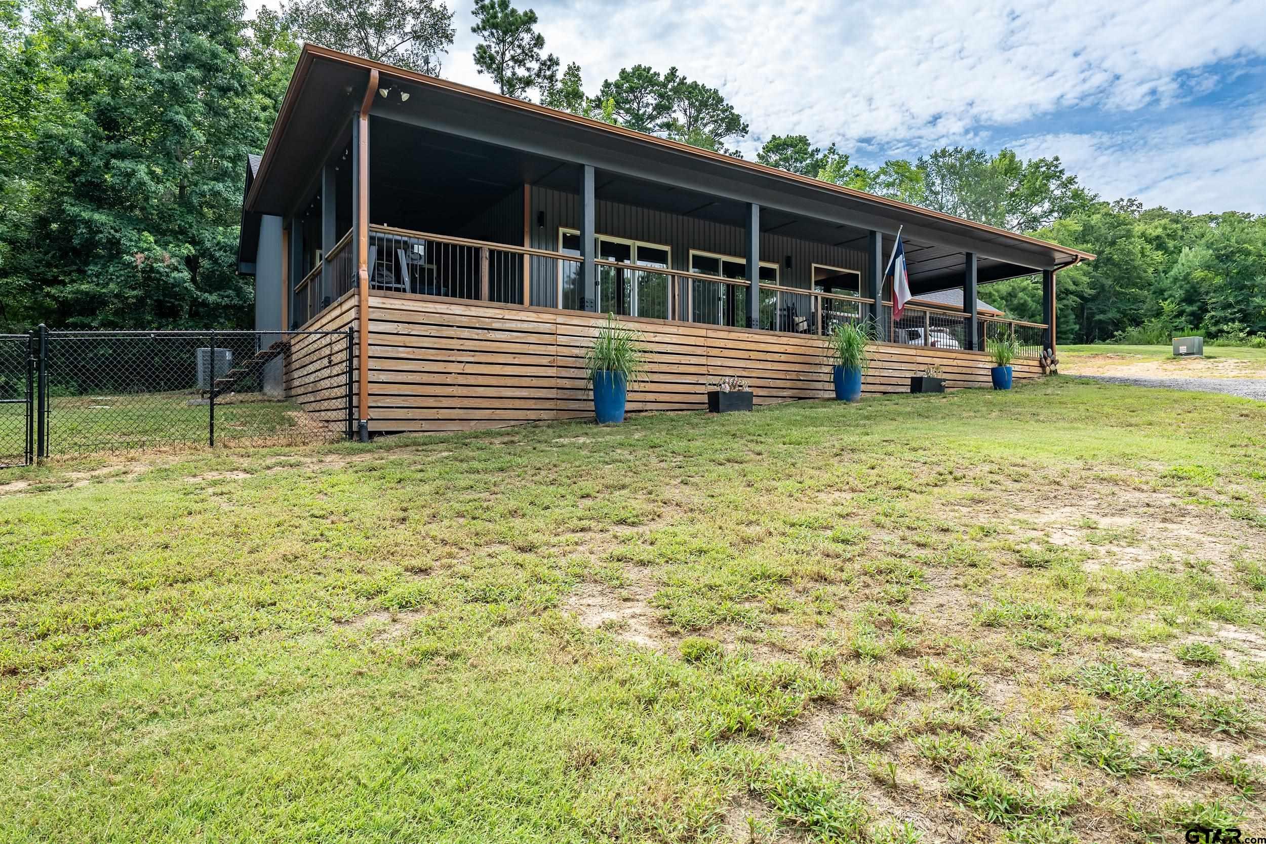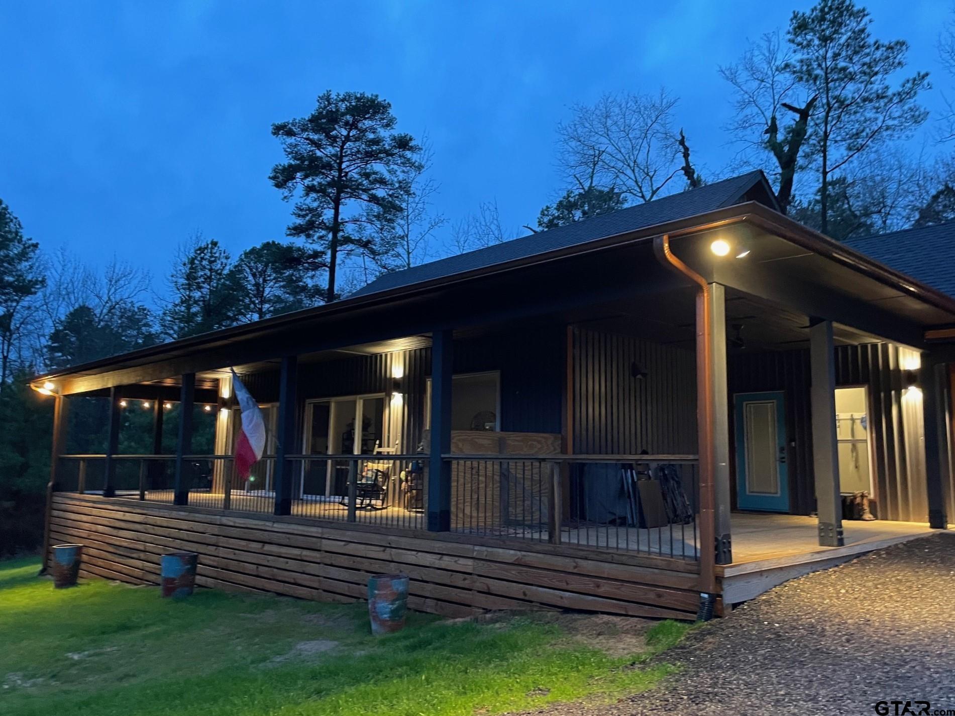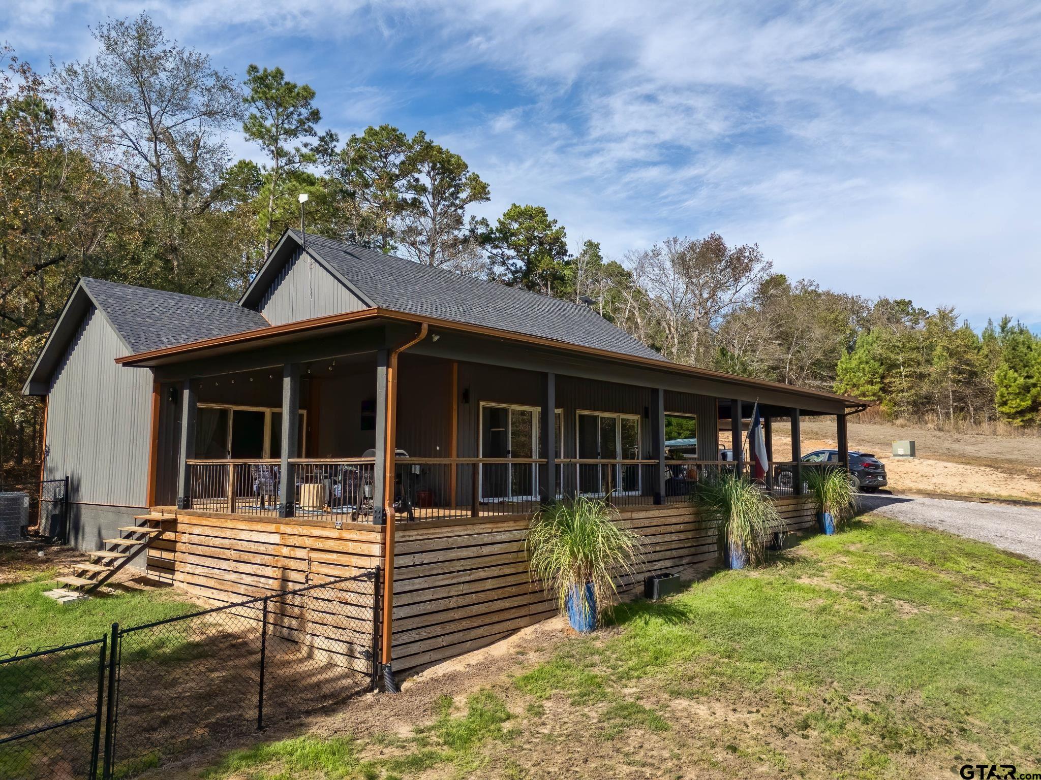 | Peaceful retreat near Lake Hawkins! Custom home nestled on over 4.4 serene, wooded acres. This custom-built home offers the perfect balance of privacy, charm, and modern comfort. With 3 spacious bedrooms and 2 full baths. Feels like your very own treehouse. Would be great as a weekend getaway or a full-time residence. Inside, the open-concept layout seamlessly connects the kitchen, dining, and living areas, creating a welcoming space perfect for everyday living or entertaining guests. Large windows throughout provide the interior with natural light and offer stunning views of the surrounding woods and wildlife. Step outside onto the expansive wrap-around porch, the perfect spot for morning coffee, evening relaxation, or simply soaking in the peaceful sounds of nature. Whether you're hosting family and friends or enjoying a quiet evening under the stars, this outdoor space is a true extension of the home. Built just a few years ago, this home combines modern design with rustic charm and sits in a quiet area known for its excellent schools. Whether you're raising a family, retiring, or simply looking to reconnect with nature, this one-of-a-kind property is a must-see. Don't miss this rare opportunity to own a slice of East Texas paradise! Call today! | |