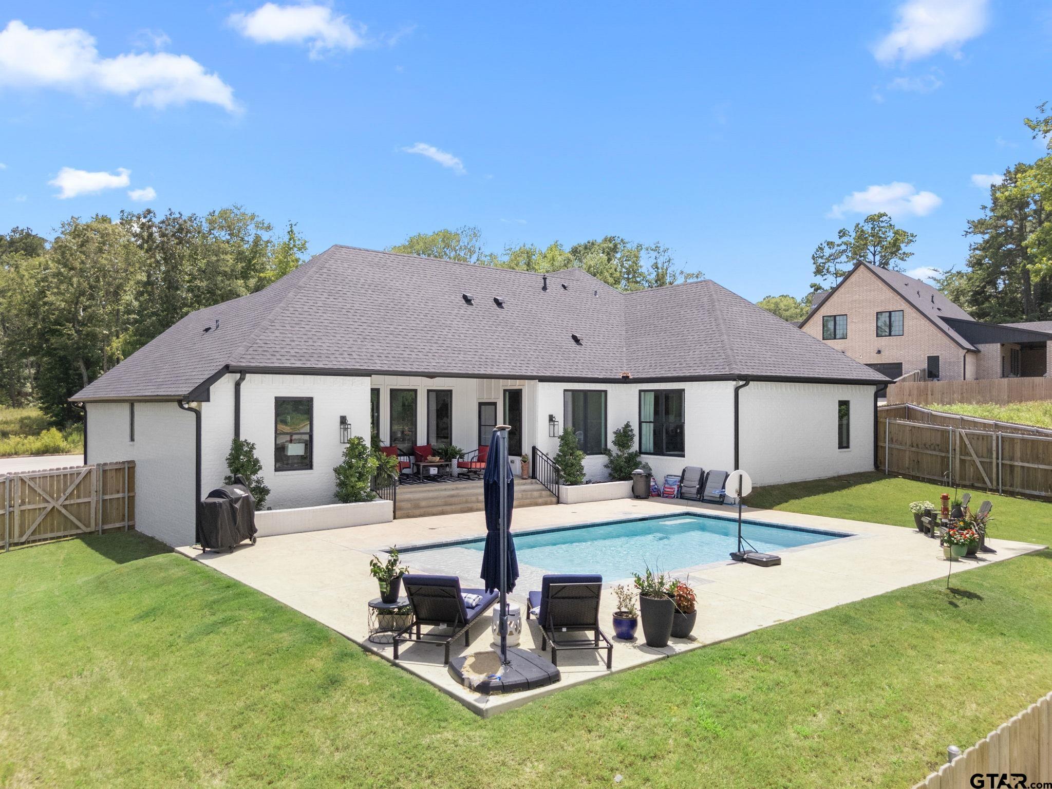 Don't miss your opportunity to own this beautifully crafted 4-bedroom, 3-bath custom home in the gated Caddo Ridge Estates of Tyler. Built in 2024 on a spacious cul-de-sac lot, this modern retreat offers over 2,500 sq ft of open living space designed with style and comfort in mind. Soaring vaulted ceilings, a dramatic floor-to-ceiling fireplace, and abundant natural light make the main living area both striking and inviting. The kitchen is a true centerpiece with a large island, stainless steel appliances, double ovens (including air fryer), and a generous walk-in pantry—perfect for everyday cooking or entertaining. The primary suite features a spa-like bath with a soaking tub, walk-in shower, and dual vanities for a touch of luxury. Thoughtful details continue throughout, including a built-in dog wash station in the laundry room. Step outside to enjoy a covered back patio and a sparkling in-ground pool that’s ready for summer fun. Located within Whitehouse ISD and offering easy access to Hwy 69 and Toll 49, this home delivers the perfect blend of luxury, function, and convenience. Schedule your showing today! |