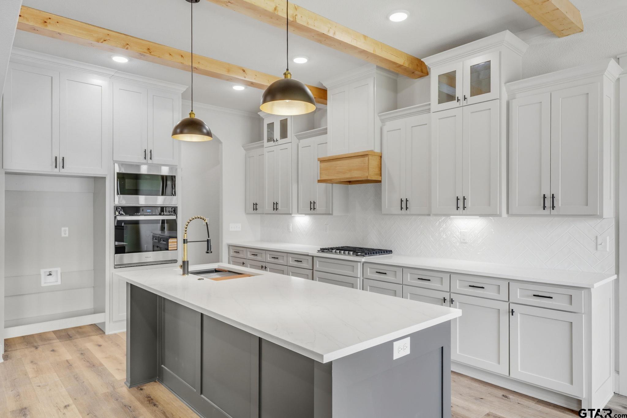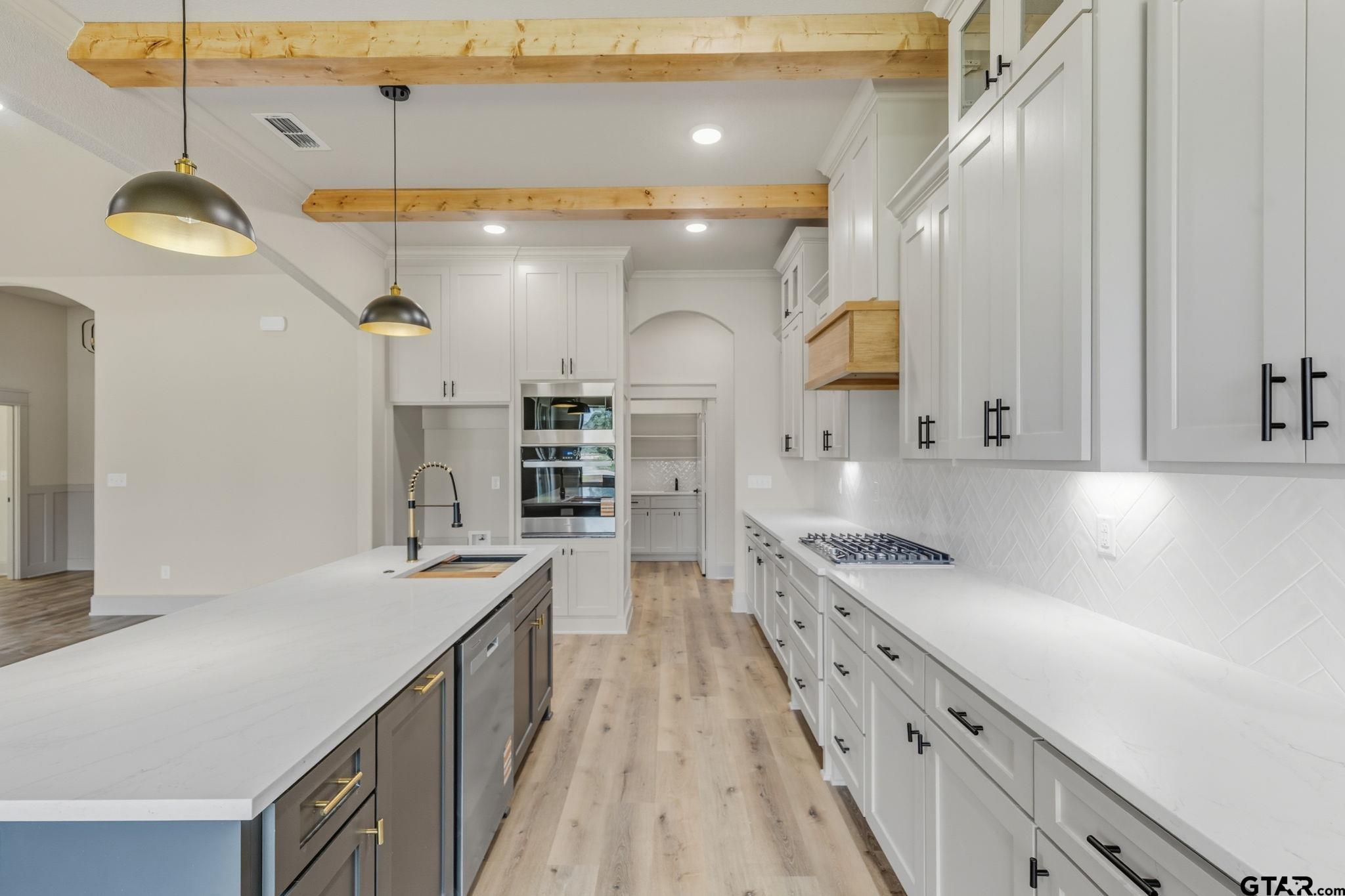 Welcome to your dream home in the heart of East Texas! This brand-new 4-bedroom, 2.5-bath home in the desirable Meadow Crest subdivision offers the perfect combination of modern design, high-end finishes, and small-town charm. Situated on a generous half-acre lot, this 2,200 sq ft home features 10-foot ceilings throughout, with dramatic cathedral ceilings in the main living area that elevate the open-concept floor plan. The spacious living room flows seamlessly into a designer kitchen featuring a large island, butler’s pantry, custom cabinetry, and upgraded fixtures—ideal for entertaining or everyday comfort. Luxury vinyl plank flooring, exposed wood beams, and natural light add warmth and character throughout. The split-bedroom layout offers privacy, with a serene primary suite and a spa-like bath, while secondary bedrooms are spacious and versatile. Curb appeal shines with fresh landscaping, a long concrete drive, and a beautifully crafted brick exterior. Located just minutes from downtown Lindale, with easy access to Toll 49 and I-20, this home offers convenience without sacrificing space or peace. Don’t miss your chance to own this move-in-ready gem in one of Lindale’s fastest-growing communities! |