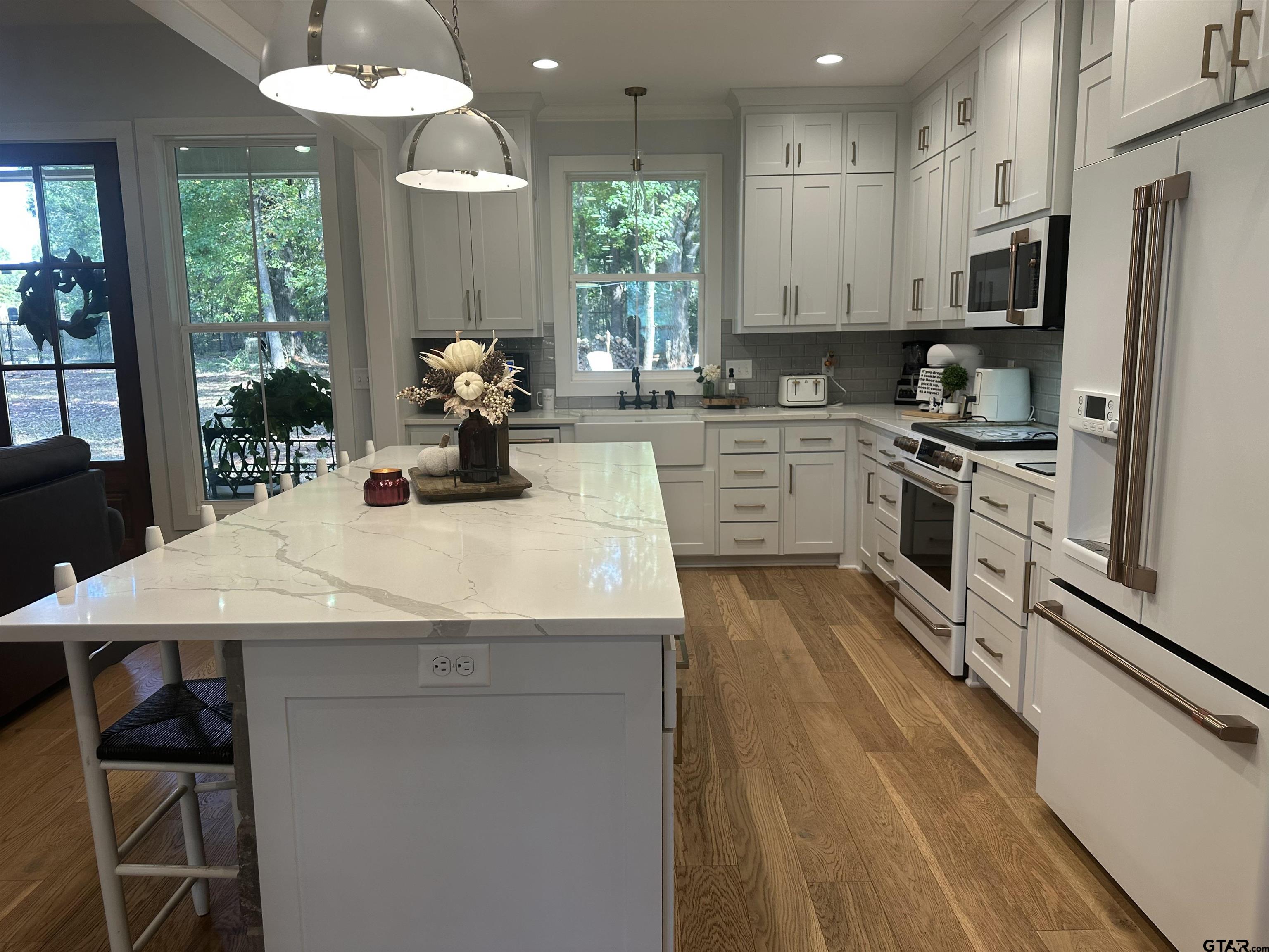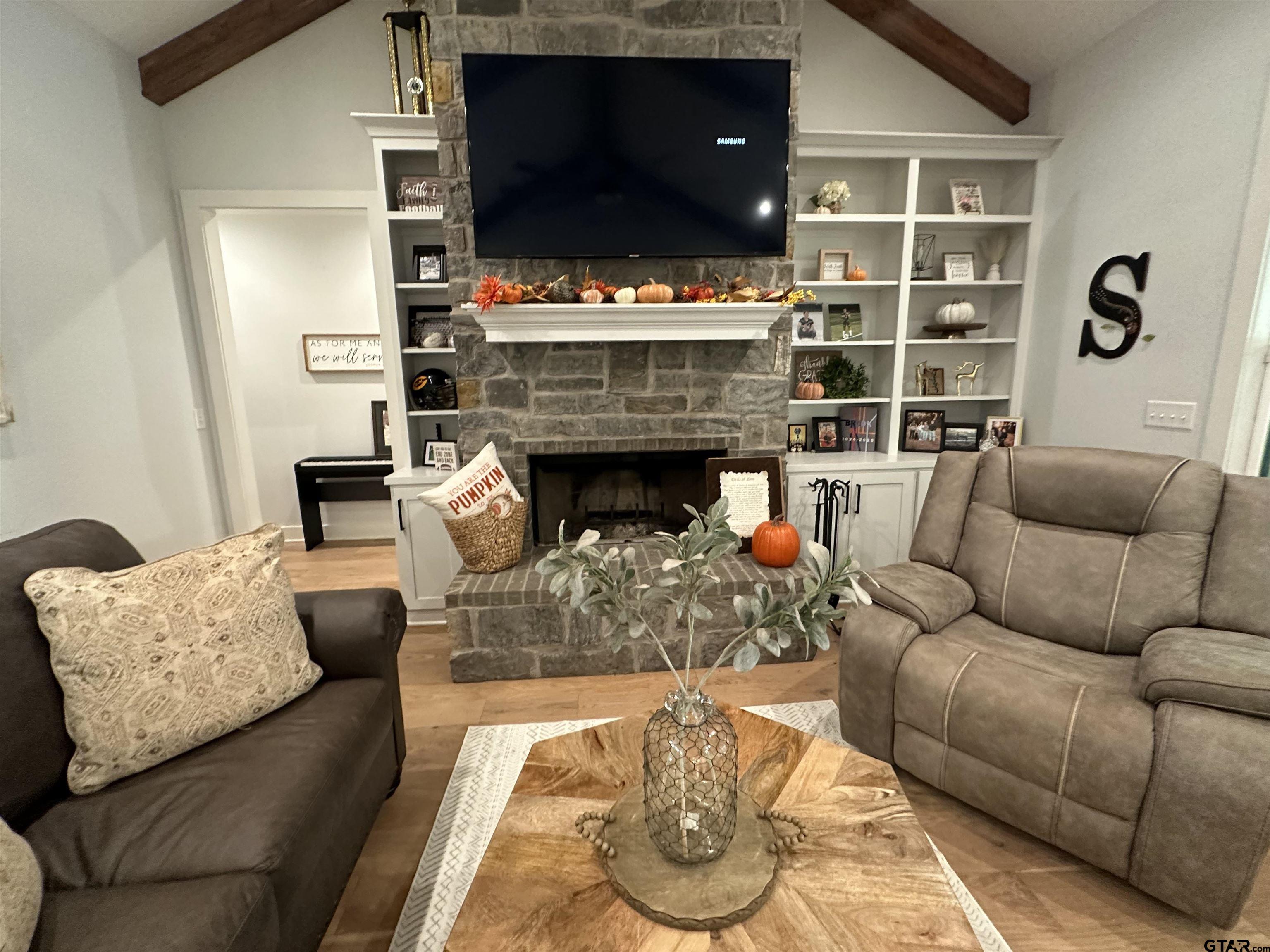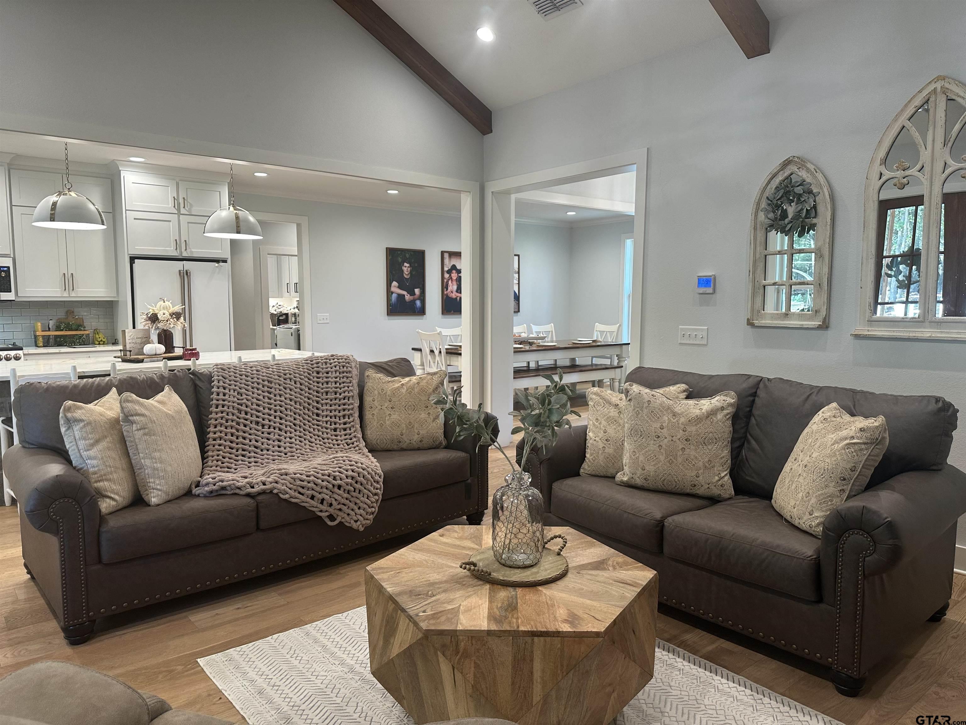 | Welcome to this stunning 4B 2.5Bath home with Lake Palestine view and exclusive use of subdivision boat ramp that offers an open floor plan and modern design throughout. The entry features double doors that open into a spacious living area with hardy plank flooring and wood burning fireplace creating a warm & inviting atmosphere. The kitchen boasts granite counterops, a farmhouse sink, Cafe appliances, dishwasher, breakfast bar, and a separate dining area perfect for entertaining. Propane hookups are available for your convenience....60A sub-panel with 30A GFCI spa circuit pre-wired for hot tub installation . Enjoy thoughtful details such as built ins, skylights, and a covered patio that overlooks a beautifully maintained backyard complete with a firepit...ideal for gathering and relaxing. This home sits on 1.13 acres and includes a 2 car garage witha total of approx 2850 sq ft under roof. Energy efficient Navien NPE-240S2 condensing tankless water heater that saves space, lowers utility bills, and delivers consistent performance for your family’s needs and owners have included spray foam insulation. New 16-SEER Trane XR16 central A/C unit (3.5-ton, Model 4TTR6042J) installed 2023, Energy Star rated w/ variable-speed compressor for whisper-quiet, efficient cooling.Located in the desirable Stone Chimney Cove North subdivision, this property offers comfort, space, and modern country charm. | |